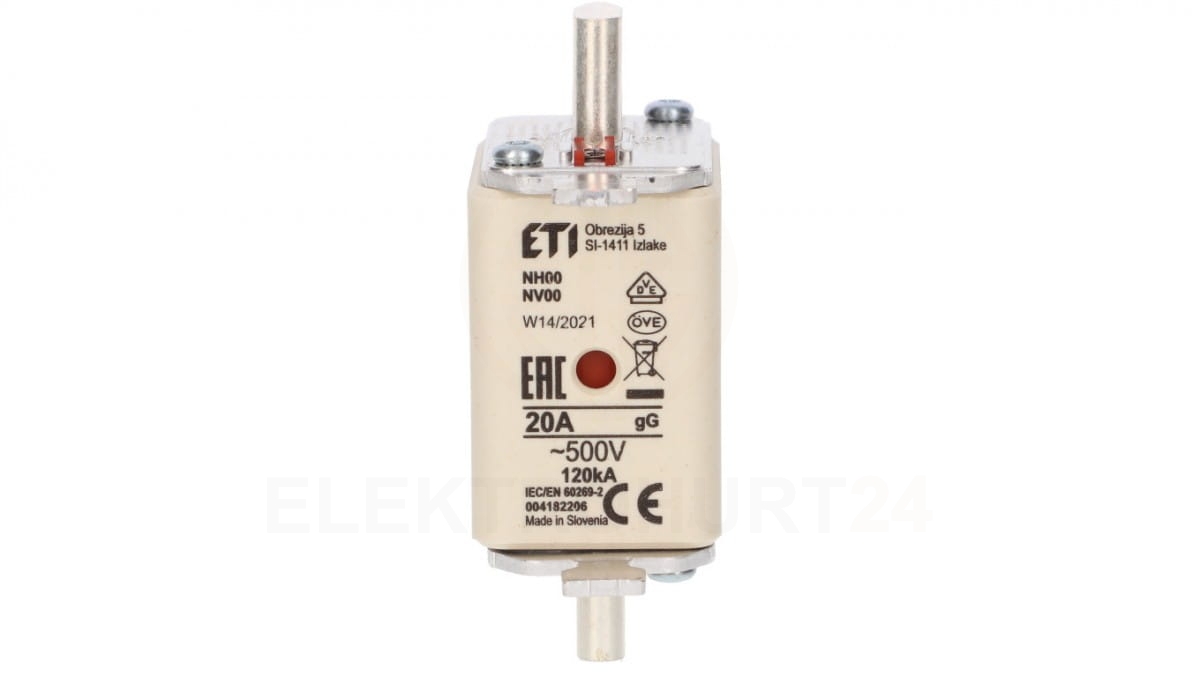 Wkładka bezpiecznikowa NH00 20A gG 500V 004182206