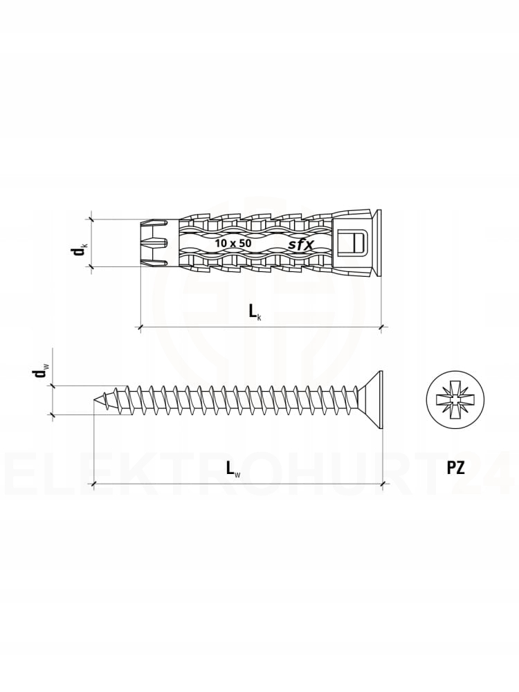 Kołek uniwersalny nowoczesny do wszystkich podłoży z wkrętem z łbem stożkowym z gniazdem PZ