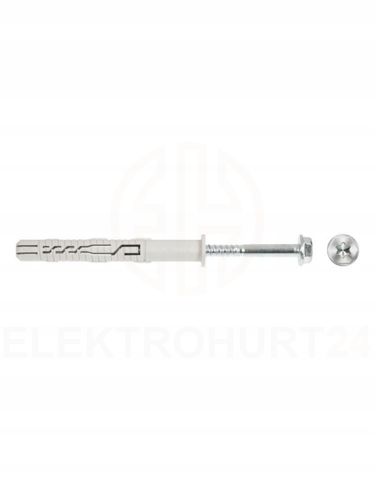 Kołek ramowy rozporowy tworzywowy z wkrętem z łbem sześciokątnym podkładkowym i gniazdem TX do montażu poprzez element mocowany do wszystkich klas podłoży