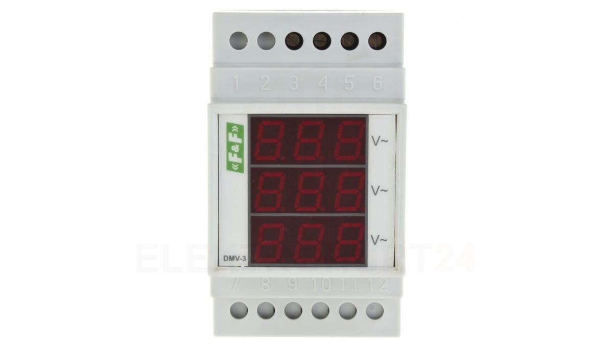 Woltomierz 3-fazowy cyfrowy modułowy 100-300V AC dokładność 1 DMV-3