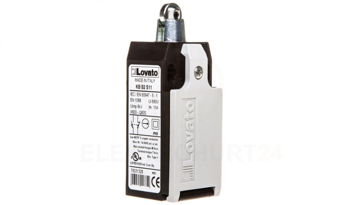 Wyłącznik krańcowy trzpień wciskany z rolką, rolka metalowa, obudowa z tworzywa 1R 1Z zestyki migowe KBB2S11