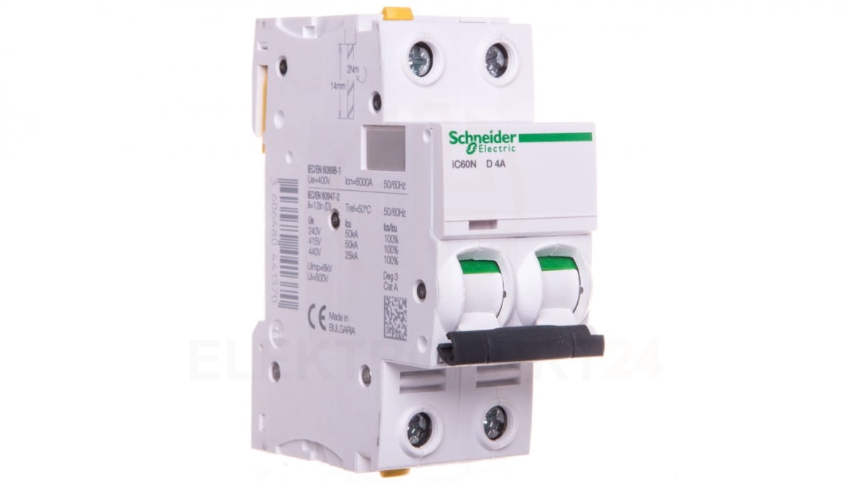 Wyłącznik nadprądowy 2P D 4A 6kA AC iC60N-D4-2 Acti9 A9F05204