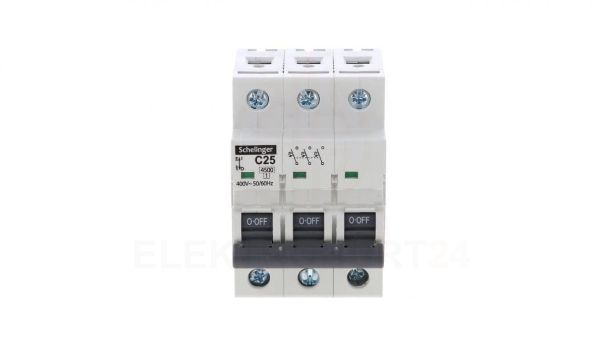 Wyłącznik nadprądowy 3P C 25A 6kA AC SCHELINGER A02-G7-3P-C25