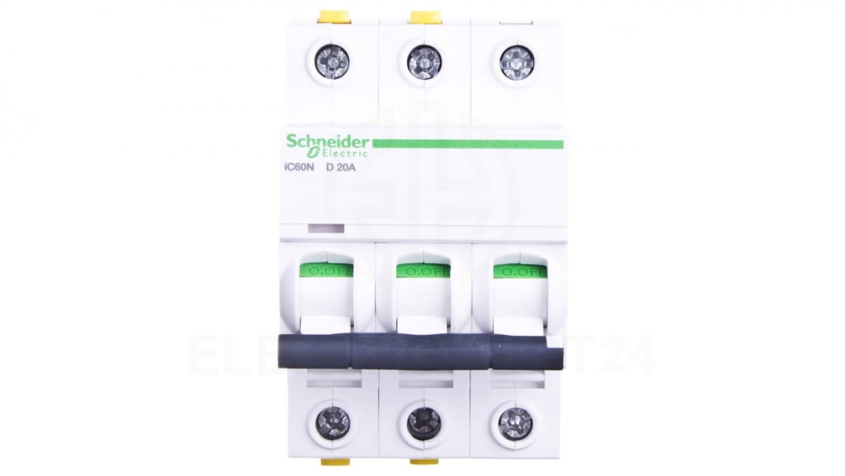 Wyłącznik nadprądowy 3P D 20A 6kA AC iC60N-D20-3 Acti9 A9F05320