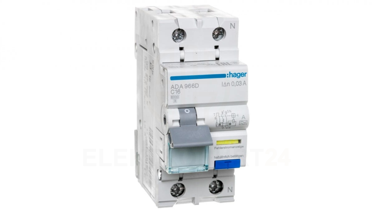 Wyłącznik różnicowo-nadprądowy RCBO 2P C16A 0,03A Typ A ADA966D