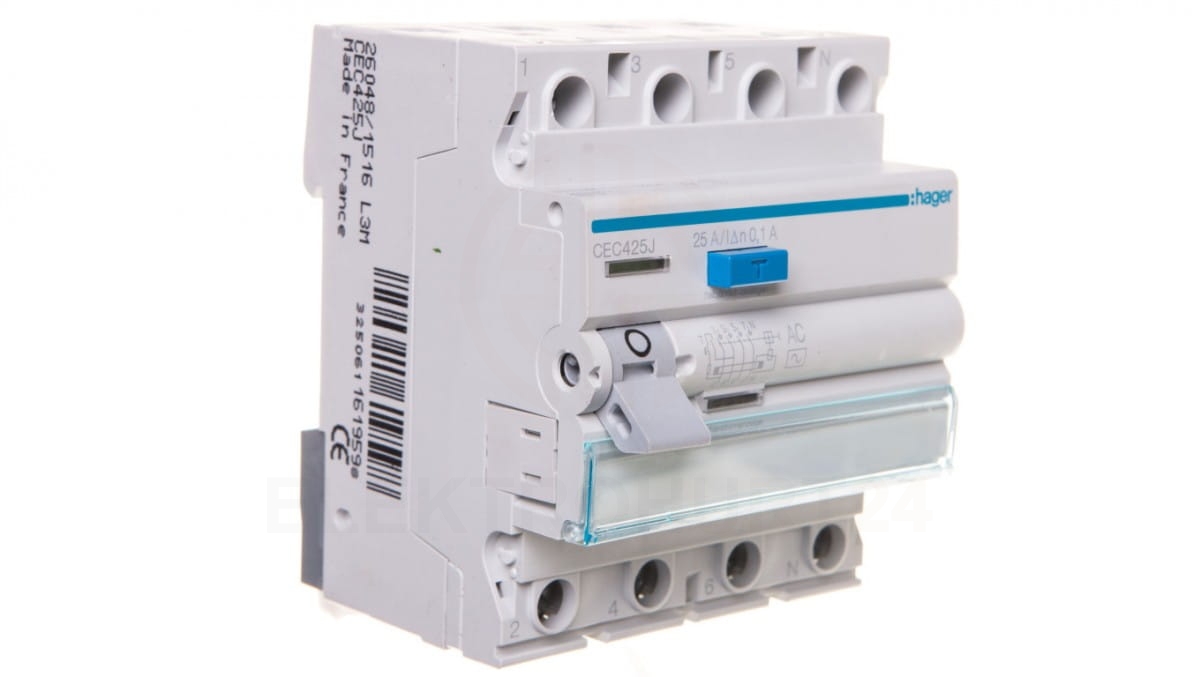 Wyłącznik różnicowoprądowy 4P 25A 0,1A typ AC CEC425J