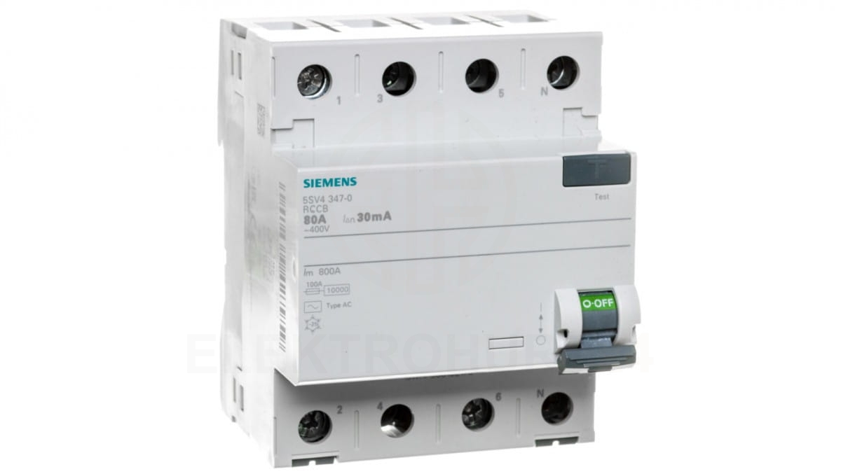 Wyłącznik różnicowoprądowy 4P 80A 0,03A typ AC 30mA 400V SENTRON 5SV4347-0