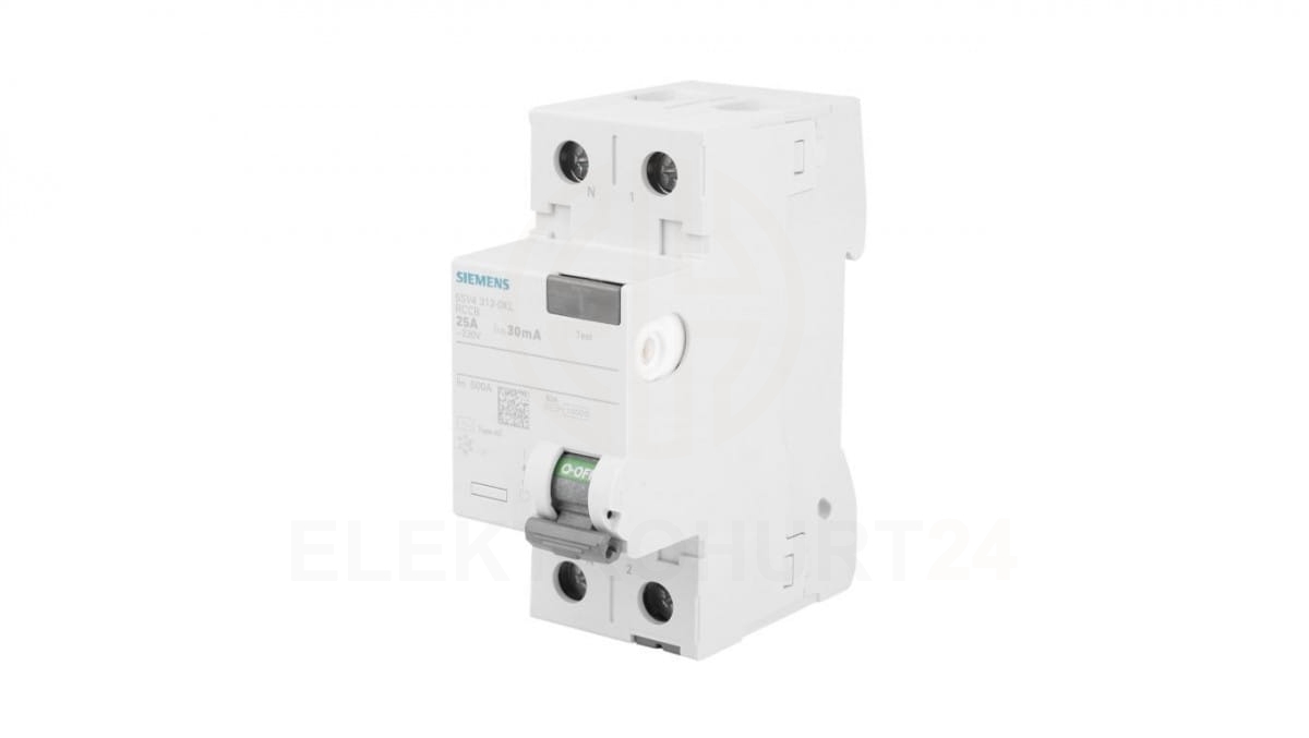 Wyłącznik różnicowoprądowy SENTRON 2P 25A 30mA Typ AC biegun N z lewej 5SV4312-0KL
