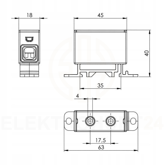 - Sposób montażu: Szyna montażowa DIN 35 mm