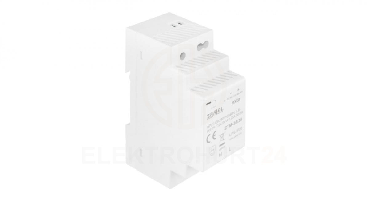 Zasilacz impulsowy montowany na szynie TH-35 (DIN) 30W 24V DC typ: ZTM-30/24 EXT10000282