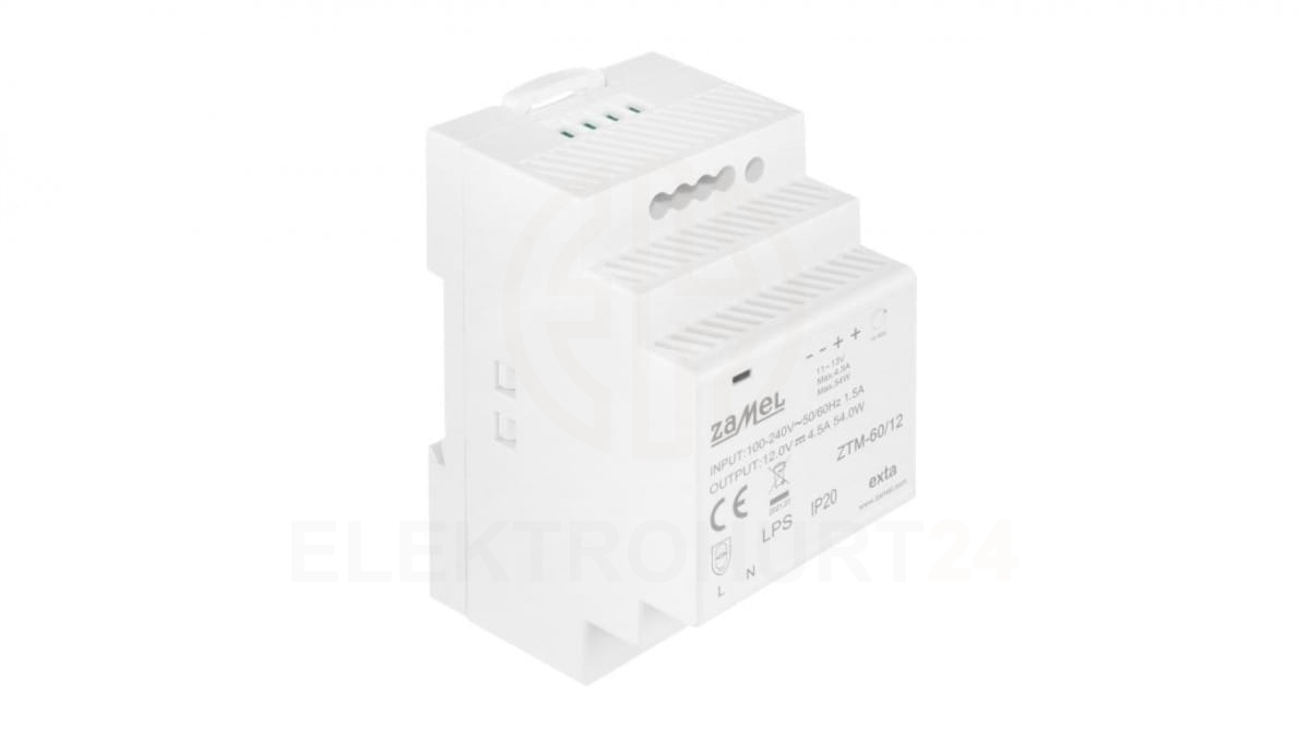 Zasilacz impulsowy montowany na szynie TH-35 (DIN) 60W 12V DC typ: ZTM-60/12 EXT10000283