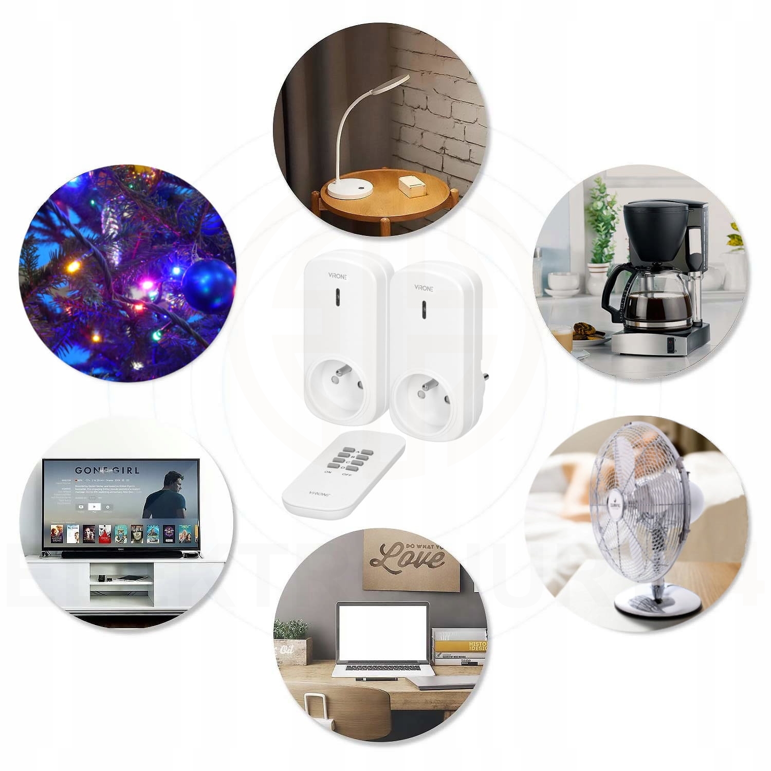 Zestaw dwóch gniazd bezprzewodowych przeznaczonych do zdalnego włączania i wyłączania urządzeń elektrycznych za pomocą pilota znajdzie szerokie zastosowanie wewnątrz pomieszczeń do obsługi m. in.