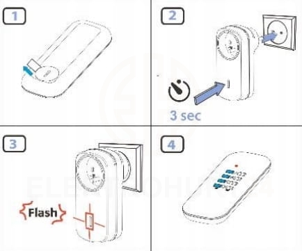 2: Włóż do kontaktu gniazdo (odbiornik), które być połączone z pilotem.