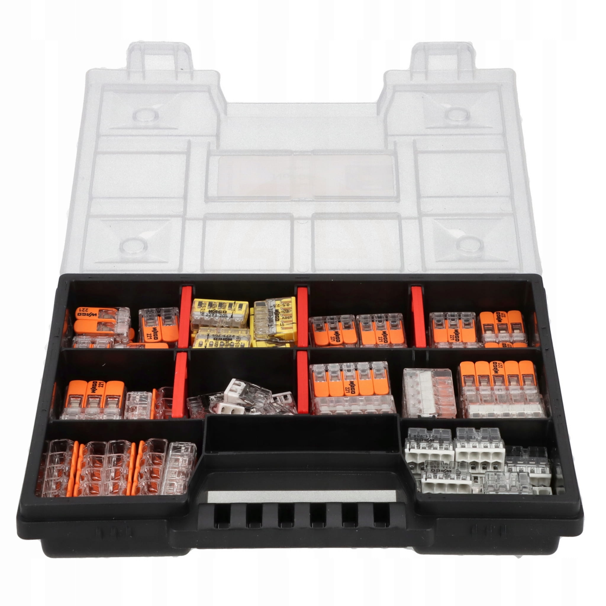 Zestaw złączek WAGO 221 2273 w organizerze do instalacji elektrycznych 102