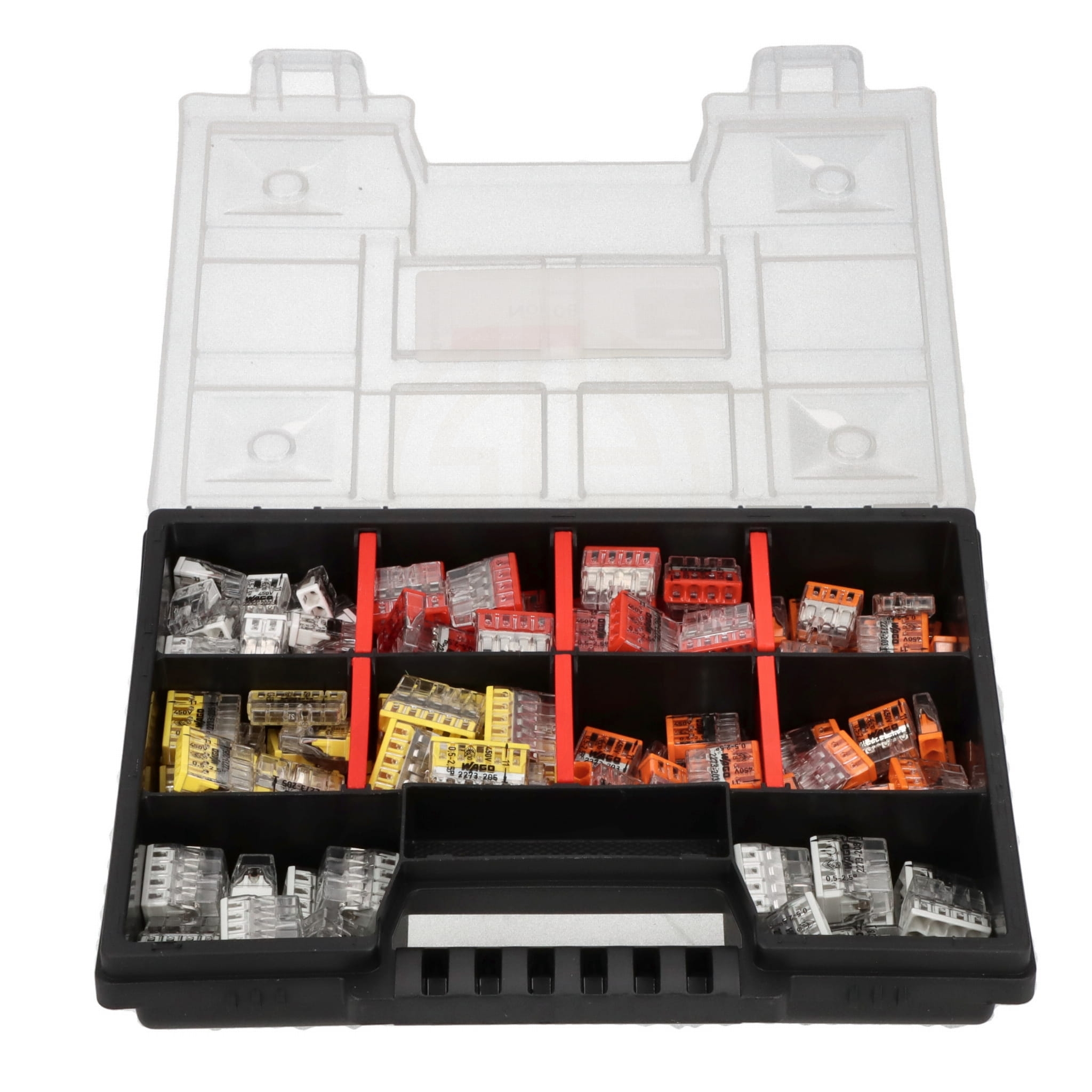 Zestaw złączek WAGO 2273 do drutu w organizerze 165 sztuk dla elektryków