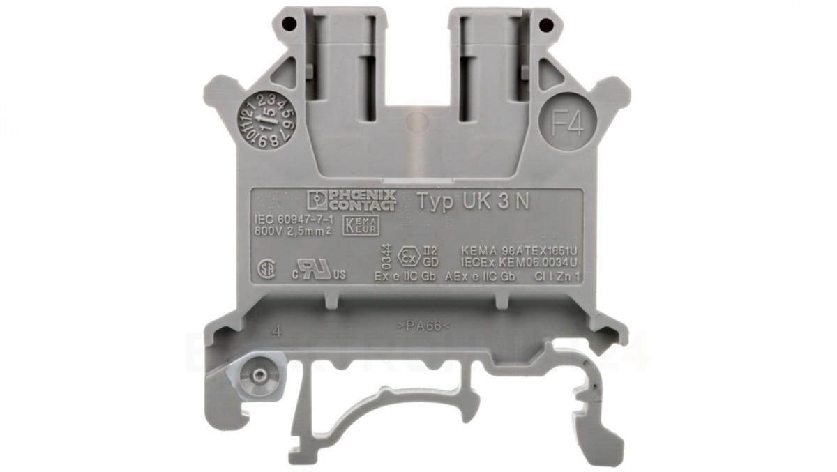Złączka szynowa 2-przewodowa 2,5 mm2 szara UK 3 N 3001501