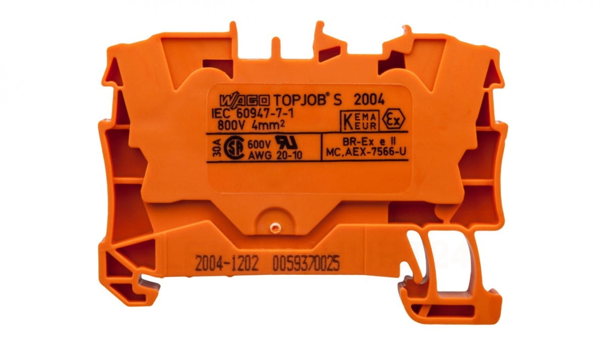 Złączka szynowa 2-przewodowa 4mm2 pomarańczowa 2004-1202 TOPJOBS