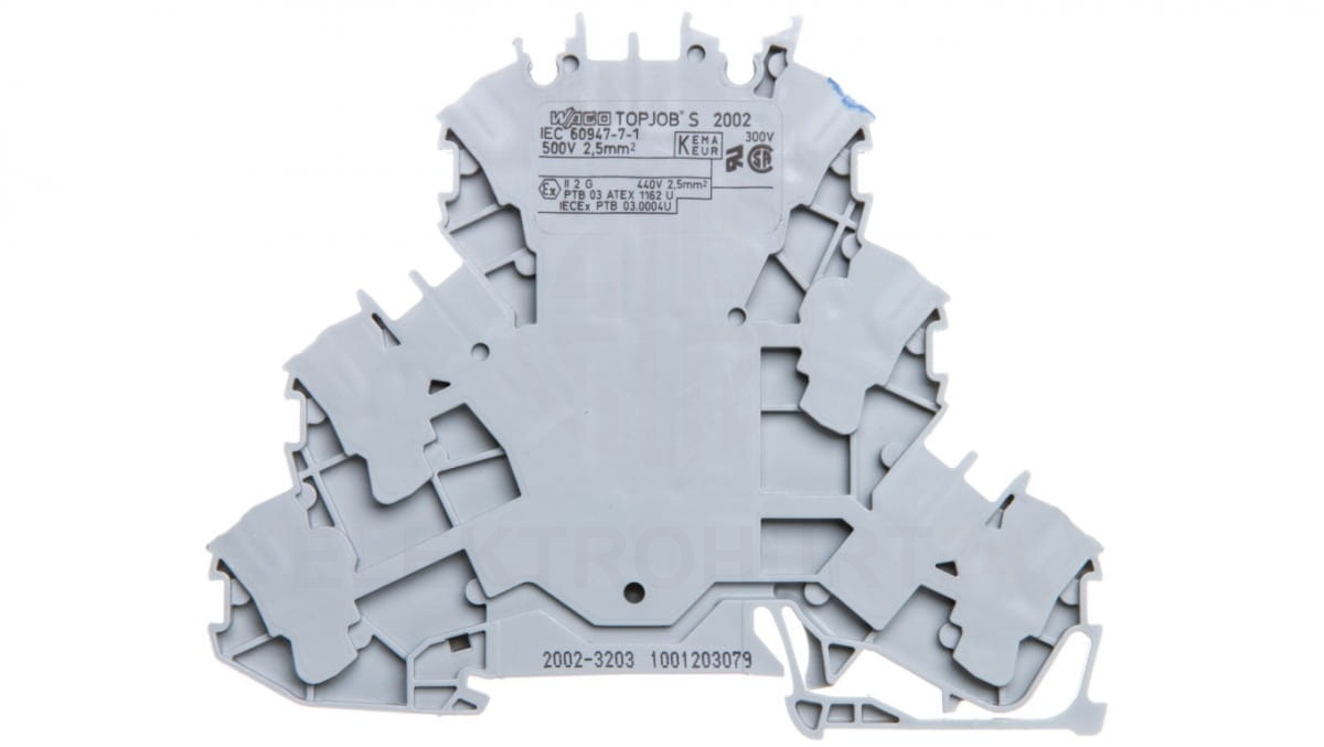 Złączka szynowa 3-piętrowa 2,5mm2 L/L/N szara 2002-3203 TOPJOBS