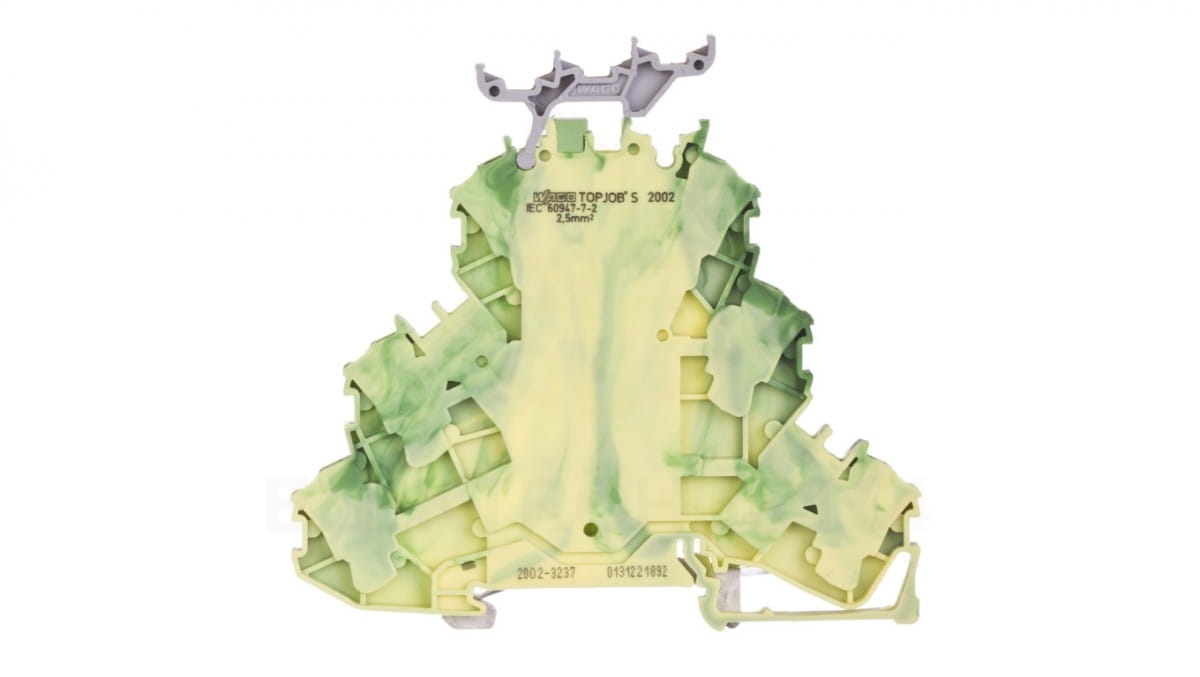 Złączka szynowa 3-piętrowa PE 2,5mm2 z podstawą oznacznika żółto-zielona 2002-3237 TOPJOBS