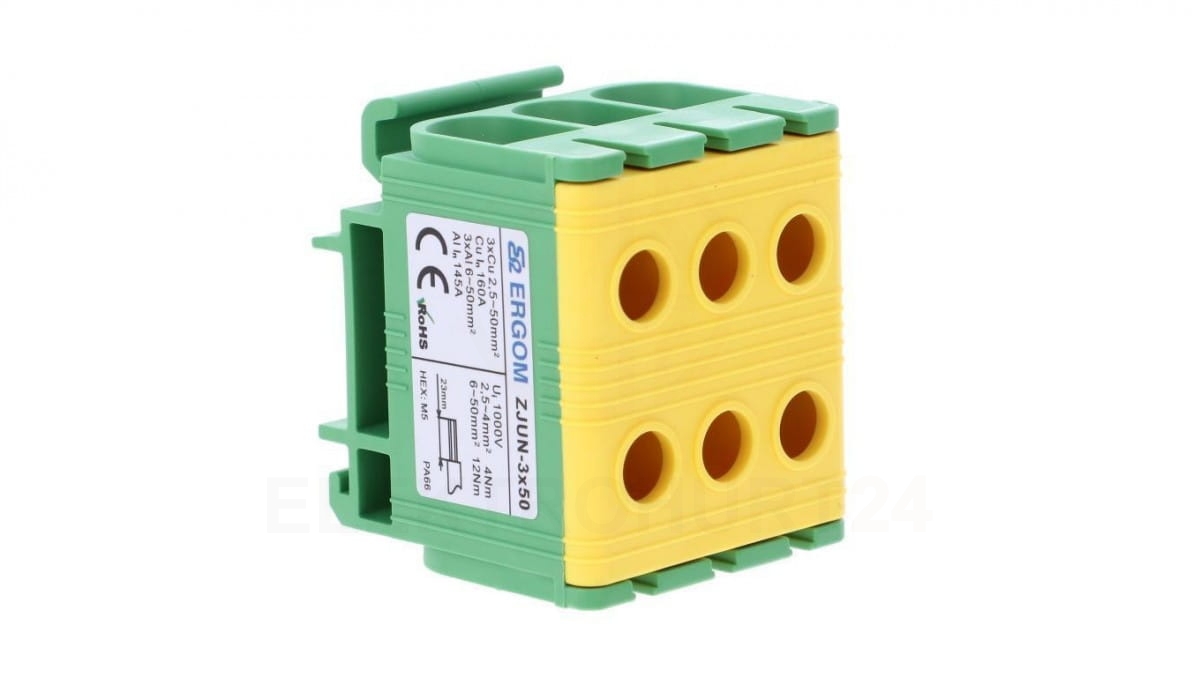 Złączka szynowa 3-torowa ZJUN-3x50 PE żółto-zielona R34RR-07020002401
